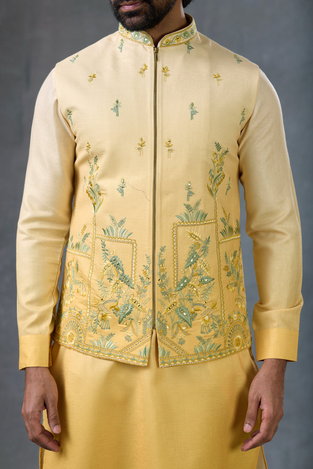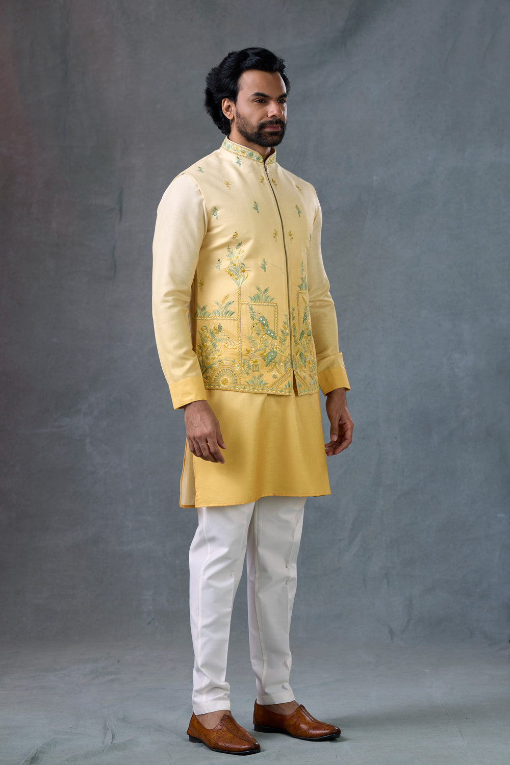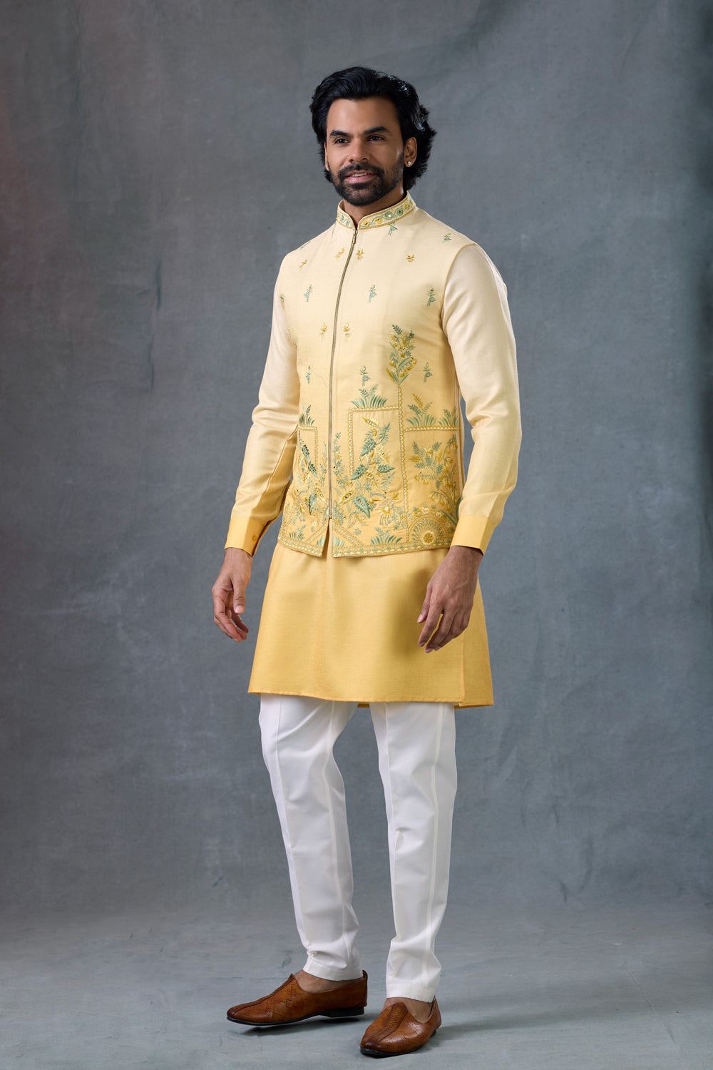 ethnic style with the Mustard Embroidered Nehru Jacket Kurta Set for Men from Mahavir NX. This Handcrafted Jacket Kurta for men is designed for comfort, elegance, and a perfect festive look. The rich mustard color paired with intricate embroidery makes it ideal for weddings, festivals, or special occasions. Crafted with premium fabric and attention to detail, it ensures a stylish fit while keeping you comfortable all day. Make a statement with timeless traditional design blended with modern charm. Shop now at Mahavir NX and experience premium men’s ethnic wear made for celebrations!