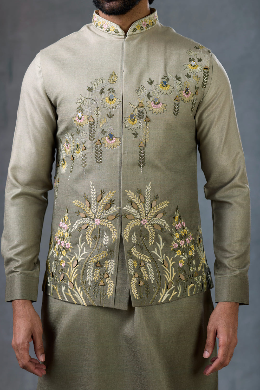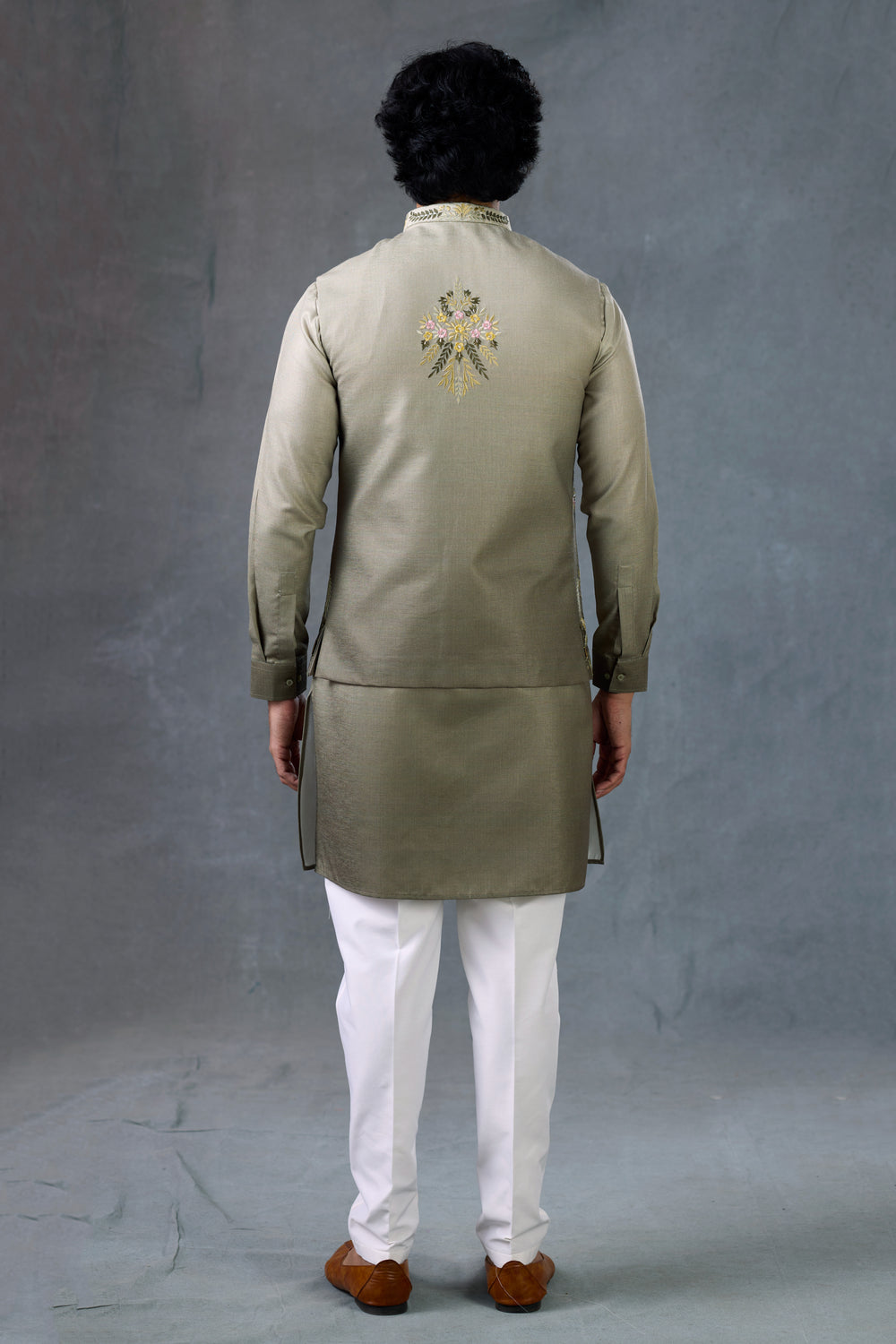 elegance with the Olive Embroidered Nehru Jacket Kurta Set for Men, crafted for those who want to make a statement at weddings, receptions, or festive occasions. This stylish Reception Jacket Kurta for men combines traditional charm with modern design, featuring intricate embroidery on premium fabric for a comfortable yet regal look. Perfect for grooms, guests, or anyone who loves classic ethnic wear, this set ensures you stand out effortlessly. Shop now at Mahavir NX, your destination for premium men’s ethnic wear, and elevate your style for every special celebration.