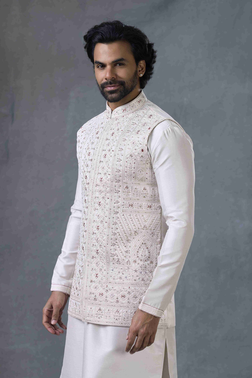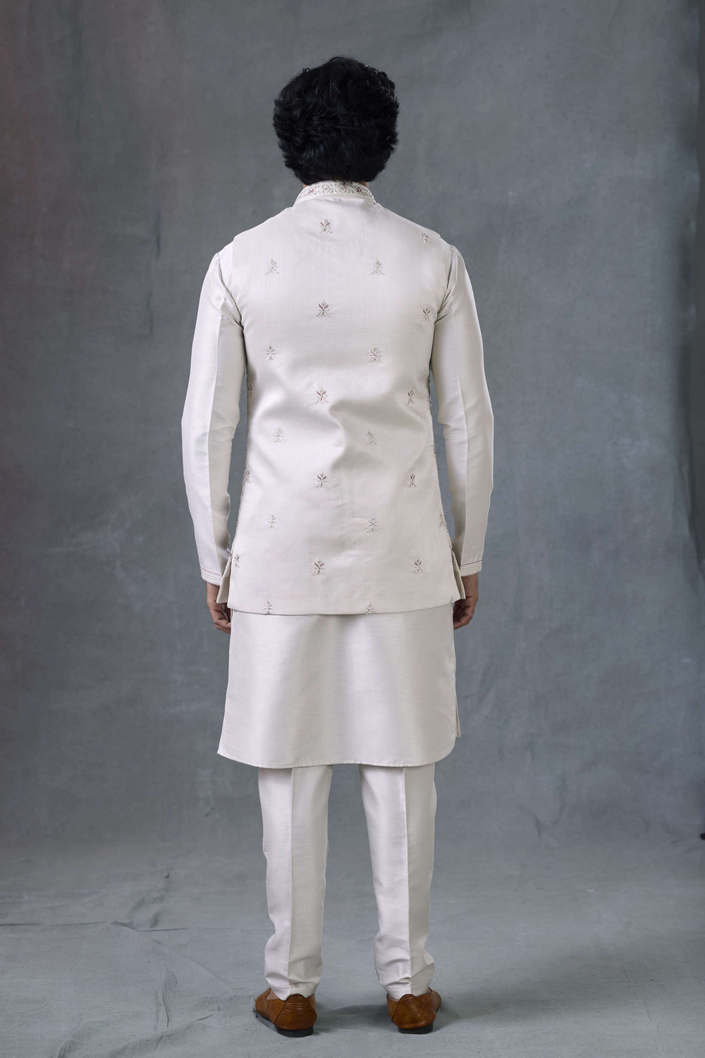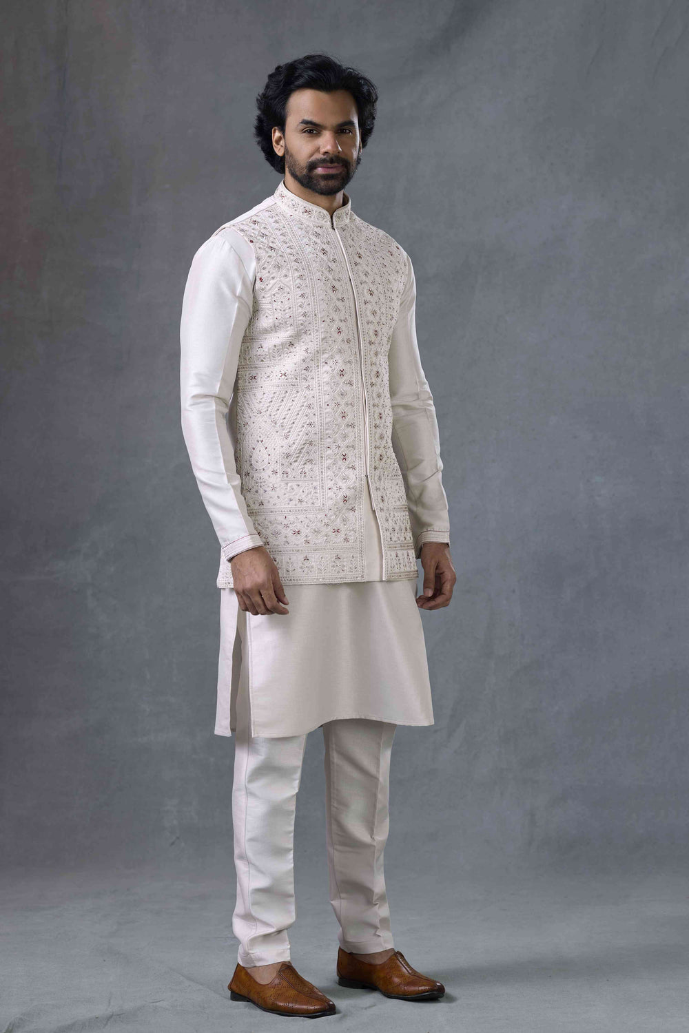 Upgrade your ethnic wardrobe with the Premium Off-White Kurta Set with Designer Waistcoat from Mahavir NX. This thoughtfully crafted kurta set combines classic style with modern elegance, making it perfect for weddings, festivals, and special occasions. The off-white kurta is made from high-quality fabric for comfort and durability, while the designer waistcoat adds a stylish, traditional touch. Ideal for men who want to stand out, this set blends sophistication with tradition. Shop now to experience the perfect mix of style, comfort, and premium craftsmanship. Make every occasion memorable with Mahavir NX’s Traditional Jacket Kurta for Men.