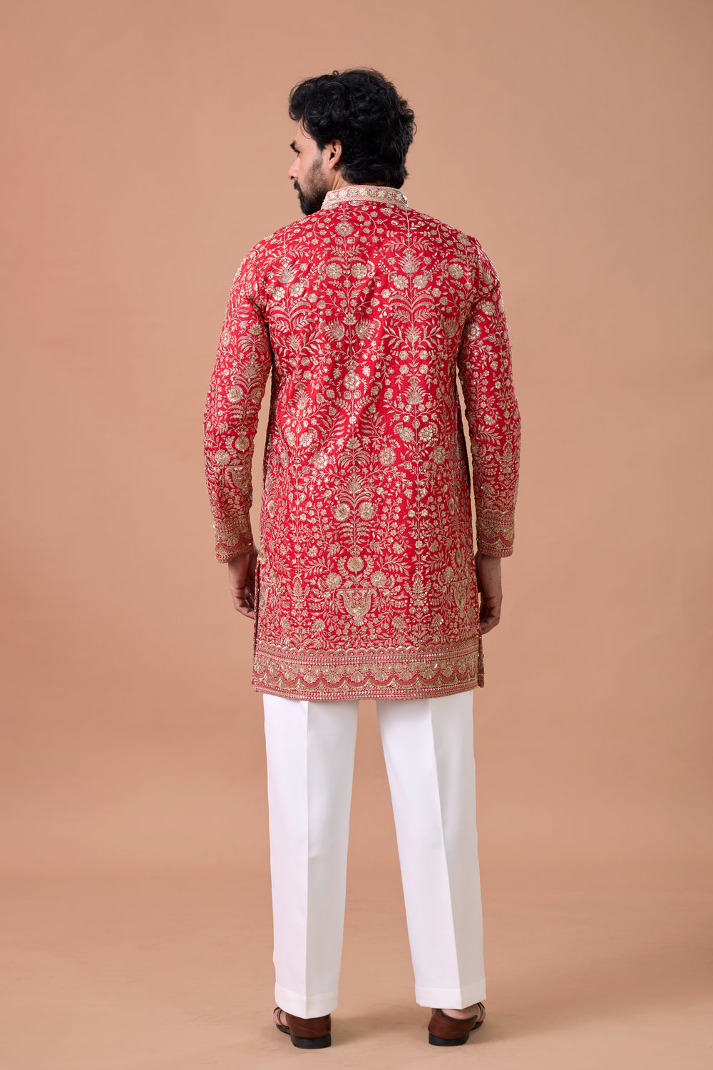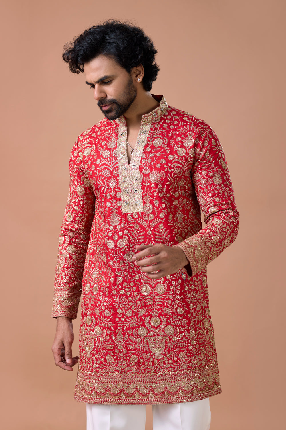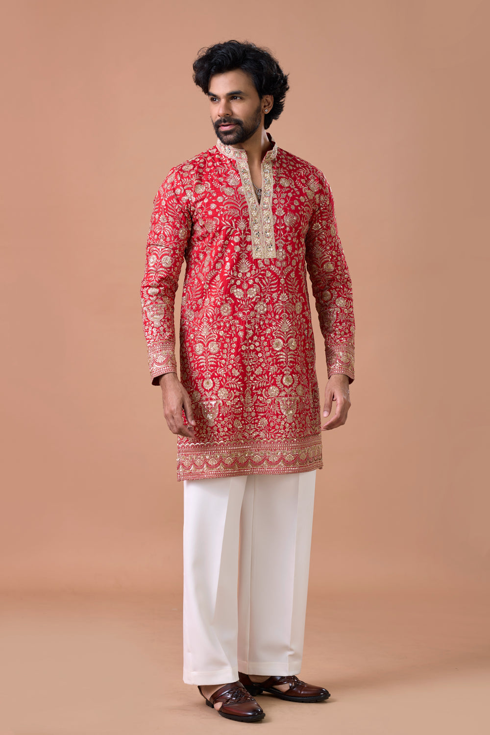 Step into royal elegance with the Shahi Gold Threadwork V-Neck Festive Kurta, a premium designer kurta for men crafted for grand celebrations. At Mahavir NX, we bring you ethnic wear that blends tradition with modern style. This kurta features rich gold thread embroidery that adds a luxurious touch, while the comfortable fabric ensures you look stylish without compromising on ease. The elegant V-neck design enhances the overall royal appeal, making it perfect for weddings, festivals, and special occasions. Shop premium men’s ethnic wear at Mahavir NX and upgrade your festive wardrobe today. ✨
